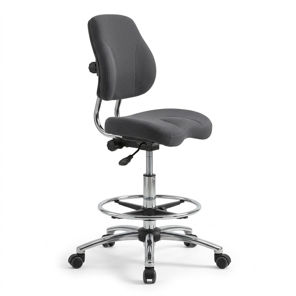 Le tabouret ergonomique avec dossier offre un soutien renforcé du dos, idéal pour les longues périodes assises. Le dossier permet de maintenir correctement la colonne vertébrale et de réduire les tensions lombaires.