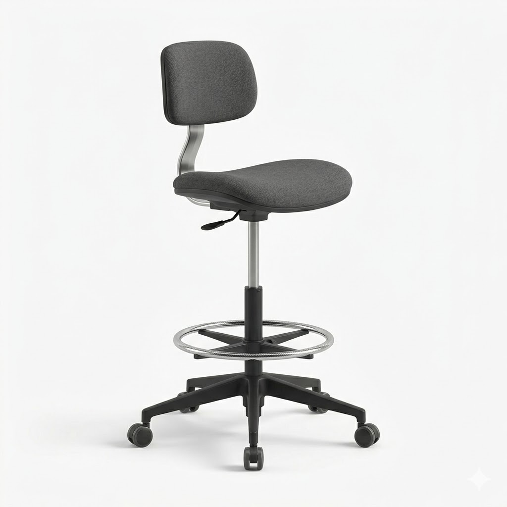 Le tabouret haut ergonomique est conçu pour les postes de travail surélevés tels que les établis, comptoirs ou laboratoires. Il permet de travailler confortablement à hauteur tout en conservant une posture adaptée.